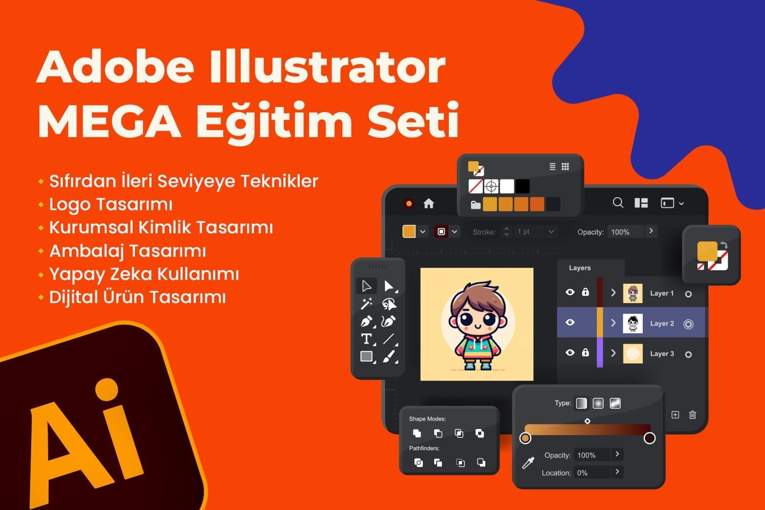 Bu eğitim seti, Adobe Illustrator'ın temel araçlarından başlayarak, size adım adım ileri seviye teknikler ve uygulamaları öğretir. Profesyonel grafik tasarım dünyasına giriş yapmak isteyenler için hazırlanmış bu kurs,